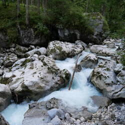 Seit Berchtesgaden halten wir Ausschau nach Klammen. Also besuchen wir die Vintgar Klamm bei Bled. Wir finden den Eintritt von 10 Euro recht happig, aber die Wege durch die Klamm sind super und zu sehen, wie sich das Wasser hier seinen Weg gebahnt hat, ist großartig. Als dann noch Wasseramseln auftauchen ist alles gut. Nach 1500 Metern Klamm kommen wir am letzten Wasserfall an. Ab hier führt ein Panoramaweg zurück zu unseren abgestellten Fahrrädern. Leider regnet es so sehr, dass wir uns trotz unserer Regenklamotten unterstellen müssen. Zum Glück hat unser super ausgestatteter Campingplatz sehr luxuriöse Duschen (für Camper), sodass wir uns sehr gut wieder aufwärmen können.