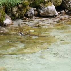 Ein weiteres Highlight für uns war die Wasseramsel. Dieser Vogel lebt nur an klaren, schnell fließenden Gewässern, weil er sich von Wasserinsekten ernährt. Schon an der Isel sollten die Wasseramseln heimisch sein, aber leider haben wir keine entdeckt. An der Soča hat es aber geklappt. Wir konnten sie super beobachten und filmen, wie sie erst wippen, dann ins Wasser tauchen und dann ihre Beute verspeisen. Wirklich coole Vögel.