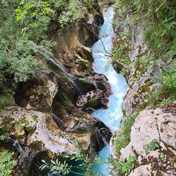 Überall führen Hängebrücken über die Soča, so dass man einen super Blick auf die beeindruckenden Schluchten, den türkisfarbenen Fluss und die Berge hat.