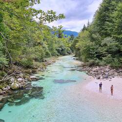 Slowenien stand auf Renis Wunschliste ganz oben, unter anderem wegen des Soča Trails, der entlang des Gletscherfluss Soča verläuft, umringt von den julischen Alpen. Und heute ist es endlich soweit: wir fahren mit einem Shuttlebus vom Campingplatz in das Tal und wandern 12 Kilometer am Fluss zurück. Wäre Timm schon fitter, hätten wir auch den gesamten Trail (25 km) gemacht, aber die schönsten Abschnitte sind auch ab der Hälfte zu sehen. Außerdem brauchen wir wegen der vielen tollen Aussichten und Fotomotive sowieso viiieeel länger für die Strecke.