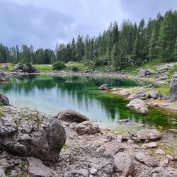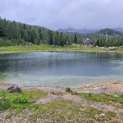 Dann kommt jedoch der erwähnte Regen aufgezogen (leider viel früher als angesagt). Zum Glück gibt es hier eine Hütte in der wir uns mit Tee und Pilzsuppe stärken bzw. wärmen können. Von hier aus kann man weiter auf den Triglav in 2.865 Meter steigen. Das ist natürlich nicht unser Plan. Wir haben den steilen und jetzt auch etwas rutschigen Rückweg zurück ins Tal vor uns. Von den sieben Seen haben wir letztlich wegen des Regens nur 5 angeschaut…