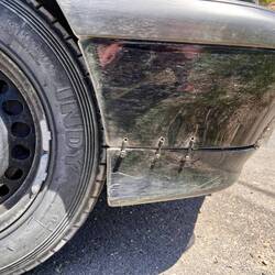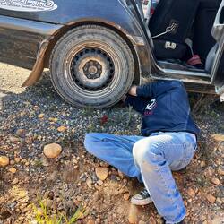 Mein Gott wie verrückt, bei der Alt-/Neuteilebeschaffung haben wir uns auf dem Schrottplatz eine Felge und einen Stoßdämpfer beschafft.