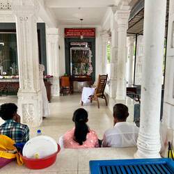 Eigentlich schon auf dem Rückweg von der Japanese Peace Pagoda hörten wir Gebetsgesang und folgten einigen Einheimischen, ohne zu bemerken, dass dies der Weg zu deren Tempel war.