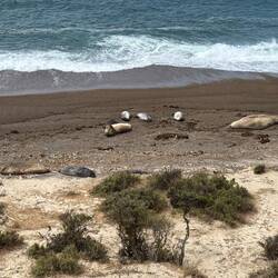 Und weiter geht unsere Fahrt im Geländewagen über die Halbinsel Valdés. Leoní zeigt uns Punta Norte, wo Seeelefanten am Strand liegen. Wir haben Mittagessen auf einer Estancia, es gibt gegrilltesBaca lagi
