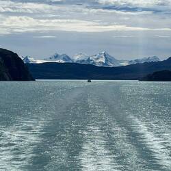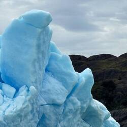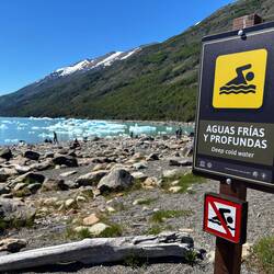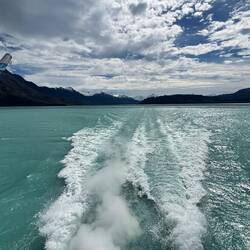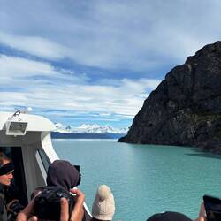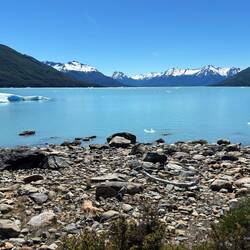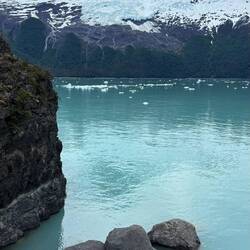 Heute starten wir zu einer Bootstour auf dem Lago Argentino, dem größten See Argentiniens. Mit 35 km/h prescht der Katamaran durch das milchig-blaue Wasser des bis zu 700m tiefen Sees, bis wir dieBaca lagi