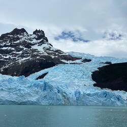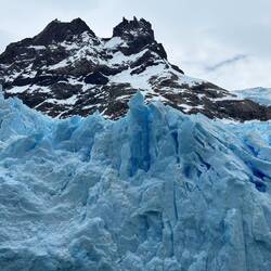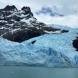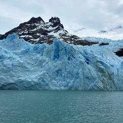 Weiter geht die Bootsfahrt zum Spegazzini-Gletscher. Dort halten wir direkt vor der Eiswand, die bis zu 70m hoch ist.