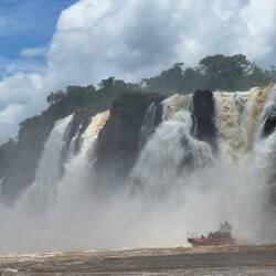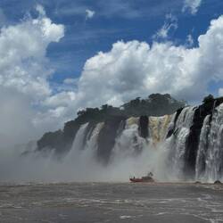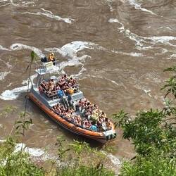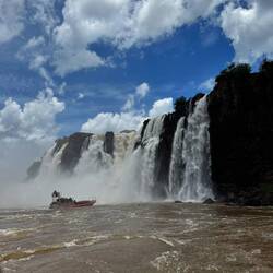 Als nächstes wollen wir noch dichter an die Wasserfälle heran! Mit einem Speedboot fahren wir auf dem tosenden Fluss bis in die Gischt hinein. Eine Dusche, die man nicht mehr vergisst!