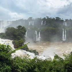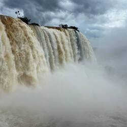 Zum Abschluss besichtigen wir die Wasserfälle von der brasilianischen Seite aus. Von hier hat man tolle Panoramablicke, kommt aber auch an einer Stelle auf einem Steg ganz weit hinein in die GischtBaca lagi