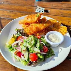 Zum Abendessen gönnten wir uns feine Fish&Chips mit einem frischen Salat und Blick auf die berühmte Surf Point Beach🏄🏼. Wir waren beeindruckt von den Surf-Skills der Surfer🤩 und gleichzeitig froh, mussten nicht WIR in diesen hohen Wellen unterwegs sein😅.