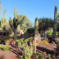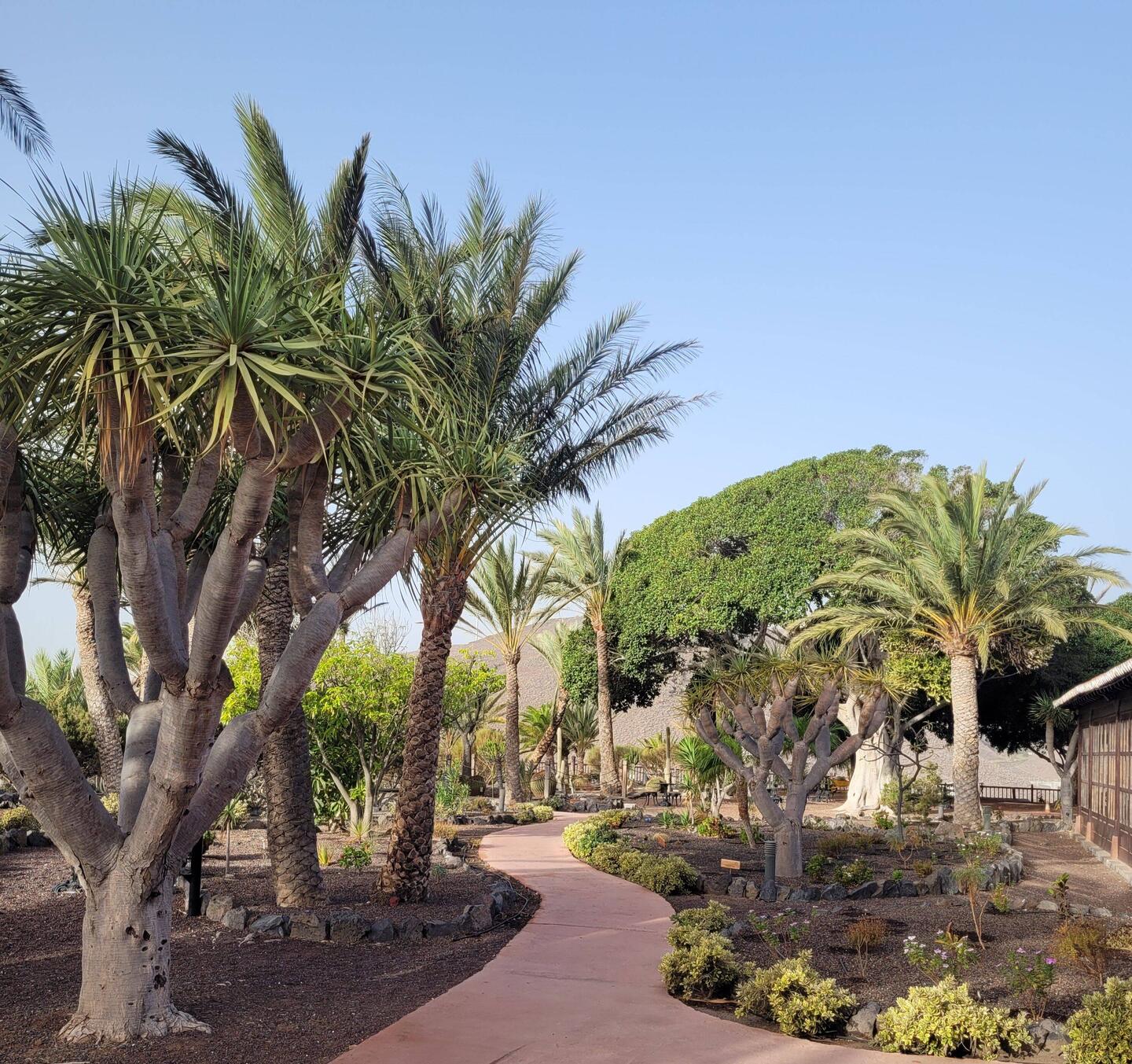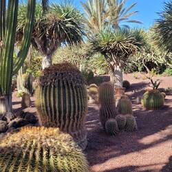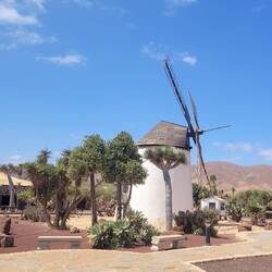 Heute ging es zuerst ins Inselinnere. Durch kleine Dörfer mit Palmen, duch wüstenähliche Landschaften und trockene, steinig-felsige Gebiete. Bei "Tuineje" haben wir das Käsemuseum mit KaktusgartenLäs mer