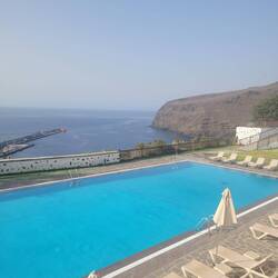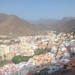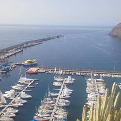 Nach dem guten Frühstück im Hotel Parador, sind wir durch den Hotelgarten mit Pool spaziert und genossen die herrliche Aussicht auf "San Sebastian (Inselhauptstadt) und den Hafen. Danach sind wirLäs mer