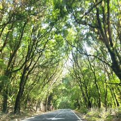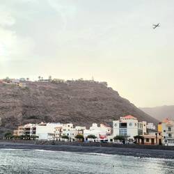 Rückfahrt aus dem "Valle Gran Rey" ein Stück durch den Märchenwald und dann gings es kurvenreich hinunter am Flughafen La Gomera vorbei an die "Playa Santiago" (1,5 Std für 50 km). Das kleineLäs mer