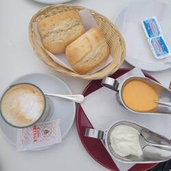 Nach einer heißen Nacht bei 32 Grad bin ich mit Tante Ursel und Elisabeth vor dem Frühstück zum Stand gefahren FKK. Herrlich erfrischend das Wasser - eine Wohltat! Kurz noch nen Cortado getunkenRead more