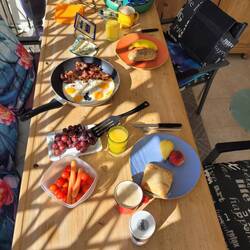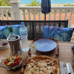 Heute erstmal ausschlafen, dann Frühstück, aufräumen, einrichten und kurz zum Spar einkaufen zum Abendessen. Später zum Strand und ab ins Meer.
