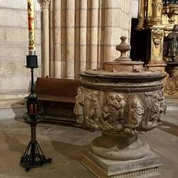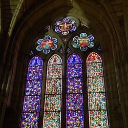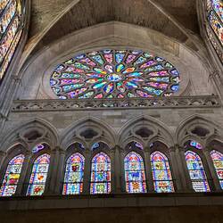 The cathedral houses over 1,000 square feet of stained glass. The largest medieval collection of stained glass that still exists in its entirety.