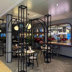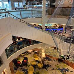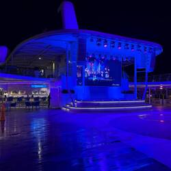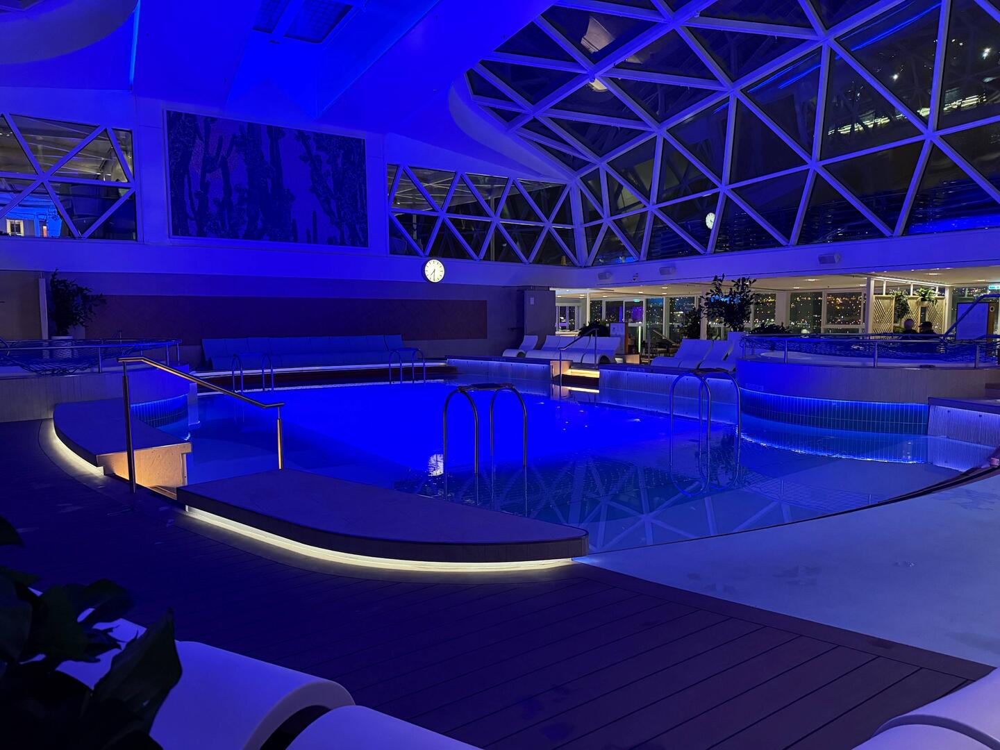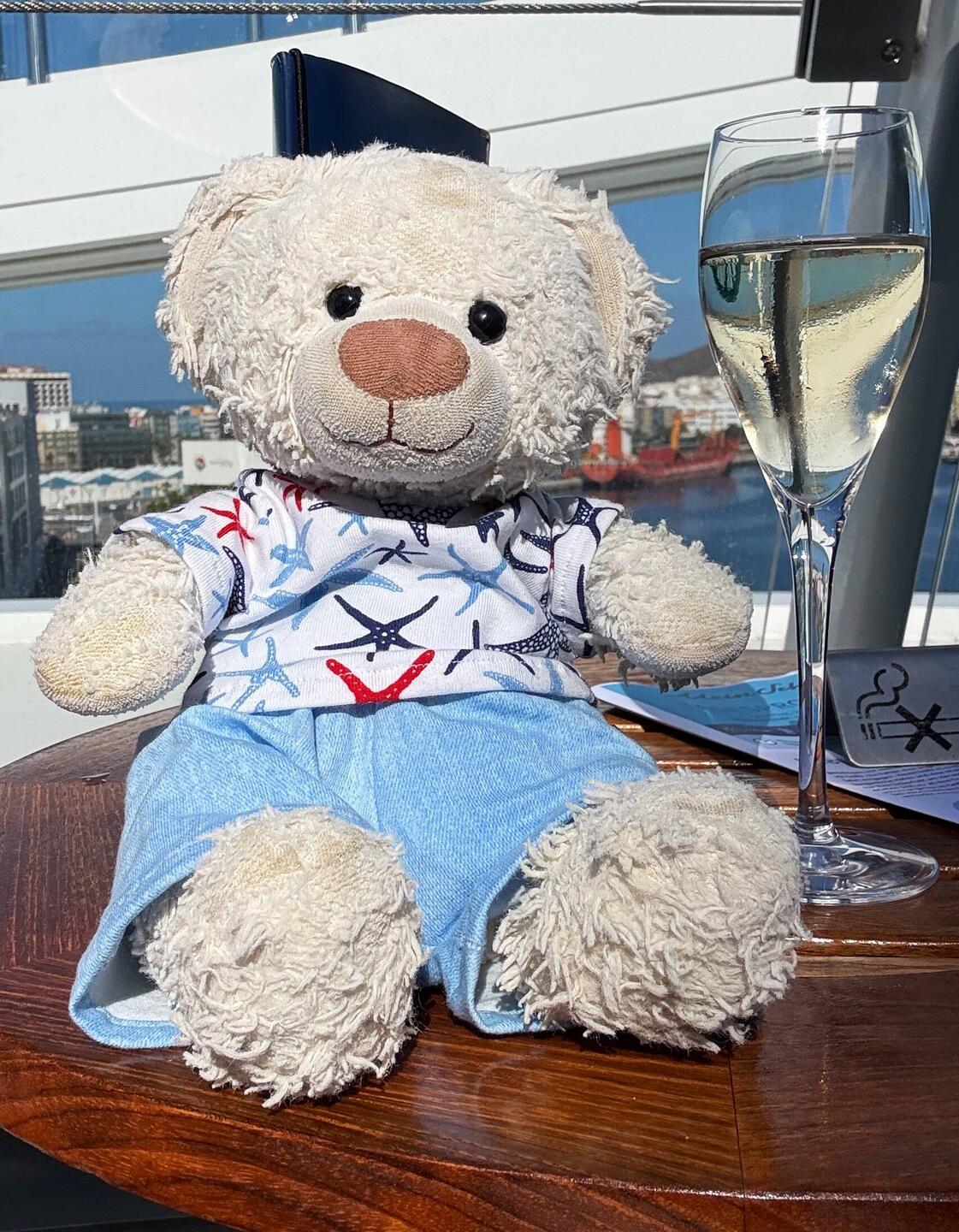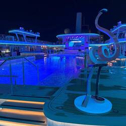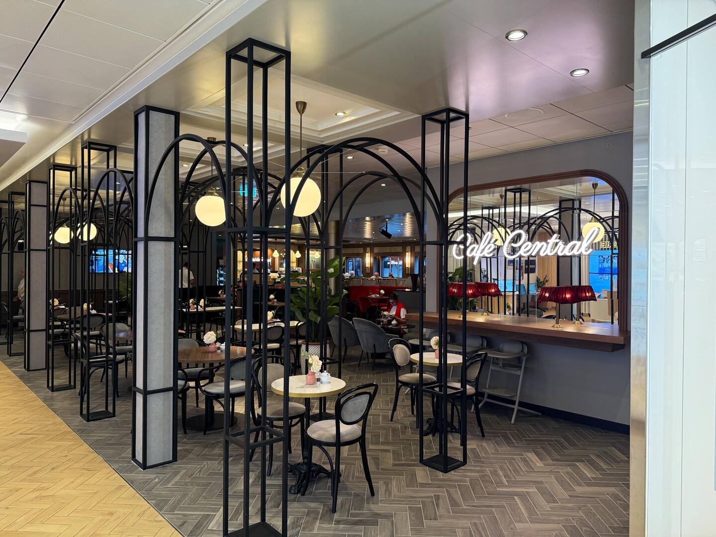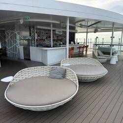Der erste Seetag bei prallem Sonnenschein. Zunächst gönnten wir uns ein zweites Frühstück im Café Central. Später ergatterten wir zwei der beliebten Plätze hinten auf Deck 14 in derLeggi altro