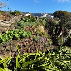 Es ist zwar recht windig, aber die Sonne scheint. So empfängt uns Funchal auf unserer zweiten Runde. Wir entscheiden uns für einen Spaziergang zum botanischen Garten oberhalb des Hafens. Also garLeggi altro