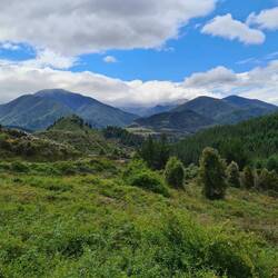 Die Strecke beinhaltete zunächst einen leichten Anstieg. Zu meinem Glück handelte es sich für einmal um eine wenig befahrene Nebenstrasse und auch das Wetter meinte es gut mit mir. Wie am Vortag passierte ich auch heute zahlreiche Obstfarmen, ehe sich wieder vermehrt Kühe und Schafe zu meiner linken und rechten tummelten.