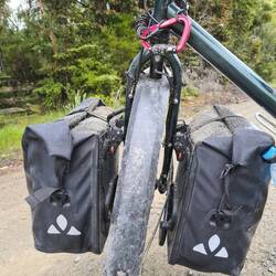 Highlights gab es auf der heutigen Strecke zuhauf. Die Fahrt nach Rabbit Island war toll, noch schöner der Singletrail direkt dem Strand entlang. Dazwischen ein Kaffeehalt mit einem superstarken doppelten Espresso und eine kurze Überfahrt mit der Fähre. Zum Abschluss kamen dann die erwarteten Höhenmeter doch noch. Sie führten mich durch Feriensiedlungen mit stattlichen Beach Bungalows bis zu meinem Campingplatz nahe der Zugangspforte zum Nationalpark.