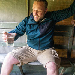 Ein gefülltes Wasserglas muss während der Fahrt balanciert werden und es sollte so wenig wie möglich verschüttet werden.