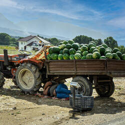 Auch hier gibt es Kinderarbeit. Der Vater steht mit seinem Auto etwas abseits und hat darin die zu verkaufenden Waren.