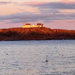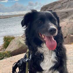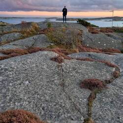 Wir starten Richtung Smögen, der Himmel klart auch wieder auf und wir genießen die Fahrt. Es ist auch nicht weit - nach nur ca. 2 Stunden kommen wir in Kungshamn auf dem Campingplatz an und bekommen eine kleine Hütte, gerade groß genug für Timon aber dafür mit Kaffeemaschine für morgen früh. Wir starten gleich wieder in den Nachbarsort Smögen und machen dort einen wunderschönen ausgedehnten Spaziergang über die Felsen. Bailey lässt sich ordentlich den Wind um die Nase pusten und wir entspannen in der wunderschönen Schärenlandschaft.