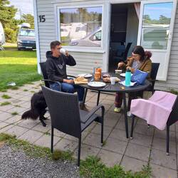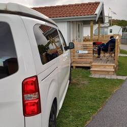 Ca. 1 Stunde weiter nehmen wir die Fähre von Moss nach Horten über den Oslofjord. Und da es allmählich schon spät wird, versuchen wir gleich einen Campingplatz zu finden. Gar nicht so einfach, denn fast alle haben schon Saisonende, früher als erwartet. Eigentlich hieß es bis zum 15.09.. Schließlich finden wir einen auf Google, Timon ruft an und reserviert eine Hütte. Eine Stunde später treffen wir kurz hinter Larvik ein, melden uns telefonisch und der Mann kommt an die Rezeption. Erst soll die Hütte für 2-4 Personen 1050 Kronen kosten. Er lässt sie uns dann aber für 800. Aber er erklärt uns, dass dieses Jahr wegen der gestiegenen Strompreise viele Plätze schon eher geschlossen haben. Es lohnt sich nicht für einige wenige Gäste die Sanitärhäuser zu beheizen. Und er hält nur eine kleine Auswahl an Hütten offen, weil es einfach zu teuer wäre alle zu beheizen. Die Hütte ist aber auch super: wieder mit Kaffeemaschine, Wohnraum und 2 Schlafräumen mit Stockbetten. Wir essen diesmal also kalt leckeren schwedischen Aufschnitt aber schön warm in der Hütte, und ich schlafe anschließend allein mit Bailey im Camper, muss also auch nicht so viel umbauen.Läs mer
