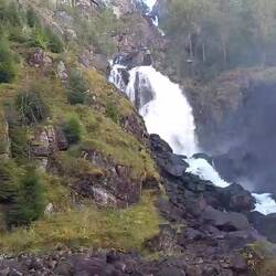 Danach wieder in ein schmales Tal. Anstelle des Tunnels nehmen wir wieder eine einspurige Serpentinenstraße mit wunderbaren Ausblicken. Dann erneut in ein enges Tal. Hinter einer Kurve überrascht uns ein mächtiger Wasserfall. Und dann kommen wir in Odda an.