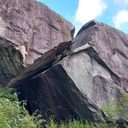 Nach längerem Überlegen, ob weiter der Küste folgen (z.B.Tierpark in Kristiansand) oder eher Richtung Einsamkeit, haben wir uns für das Landesinnere entschieden. Denn die Straßen ziehen sich und mehr als 60/70 kmh sind kaum zu schaffen, Und Timon muss Montag Mittag schon in Oslo sein. Da geht sein Flieger nach Hamburg. Wir suchen uns als Ziel die Giants Kettle aus. Von Gletschern ausgewaschene Felsformationen, die ein Flussbett entlang kleine miteinander verbundeneTeiche gebildet haben. Im Sommer bestimmt herrlich zum Baden.