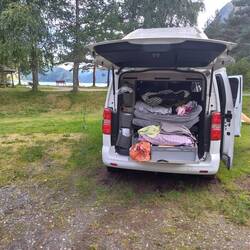 Schließlich geht es weiter. Diesmal googlen wir rechtzeitig nach einem Platz, der offen hat und werden schnell fündig. Es gibt zwar keine Hütten, aber wir haben das kleine Zelt mit und Timon erklärt sich bereit dafür. Unterwegs kaufe ich noch ein Brot und dann kommen wir abends kurz vor Vinje an.Läs mer