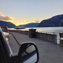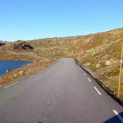 Einen Teil des Weges kennen wir schon. Dann aber leitet uns das Navi ganz unverhofft auf eine weitere Hochebene, auf der uns nur sehr wenig Autos begegnen. Die Strecke wird mal wieder nie langweilig. Ann-Sophie übernimmt am Nachmittag. Wir tauchen wieder tief ab in ein Tal und haben in der Abenddämmerung unsere nächste Fährfahrt über den Sognefjord. Dann schließlich im Dunkeln an einem Fjord entlang bis Gaupne zum Campingplatz.