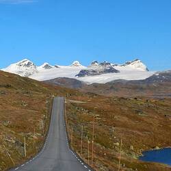 Es sind nur knapp 1,5 Stunden Fahrt. Wir passieren eine wunderschöne Hochebene und kommen an mehreren Skizentren vorbei. Dann geht es hinab in ein schmales Tal. Und in Rjukan beginnt der Serpentinenaufstieg zum Gaustatoppen.