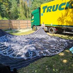 Last ritual, last merch setup of this tour. It was a beautiful day, and the setup was super easy with my new camo nets.