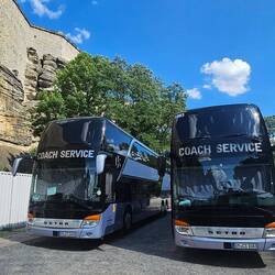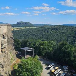 We had a slightly longer drive today since we had to go all the way back to eastern Germany. Near Dresden is the big fortress, Königstein, where we’ll be playing tomorrow.