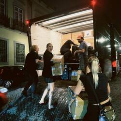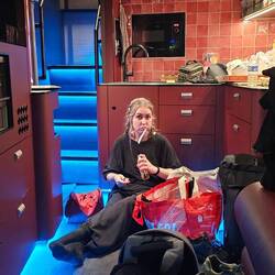 First, we stopped at 8:30 at my studio in Apeldoorn to pick up the last restock. It was so unique for me to have a tour bus at my place—my home. It was also good to pack some last personal things.Läs mer