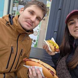 Petit passage au marché, évidemment, on a mangé un hot-dog !🌭 Quelle question !