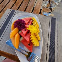 Hüt heimer es tolls Frühstücksbuffet atroffe, i gniesse vorauem di feine tropische Frücht 🍍🍉🥥🍈