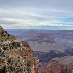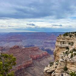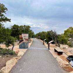 Obwohl ich nach dem intensiven Vormittag schon ziemlich groggy war, wollte ich noch unbedingt etwas mehr vom Grand Canyon sehen. Also nach kurzer Pause ging’s weiter – zuerst ein paar Kilometer auf dem Rim Trail, der direkt am Rand des Canyons entlangführt. Wunderschöne Aussichten, wenig Anstrengung – perfekt zum Auslaufen.