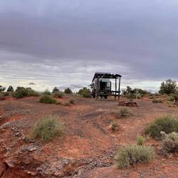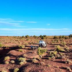 Ich hatte mich mit einem scheinbar harmlosen Navajo-Hund angefreundet. Sah freundlich aus, wedelte nett – kurz: ein tierischer Sympathieträger. Während ich mein Frühstück (Rührei mit Speck, belegte Brote – alles liebevoll angerichtet) draußen auf dem Tisch ausbreitete, ging ich nur kurz in die Kabine, um mir einen Kaffee zu holen.