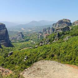Oggi si riparte per dirigerci presso Igoumenitza, scegliamo di fare tappa lungo la strada, ai monasteri delle Meteore, sfidando il clima (il termometro dell'auto segna 40°🥵).