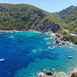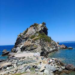 Sulle orme di Mamma Mia! visitiamo l'iconico monastero, prima però facciamo un bagno nella spiaggia sottostante, piccola e quasi deserta, dopo che tutti gli escursionisti di giornata ripartono con 2Read more
