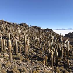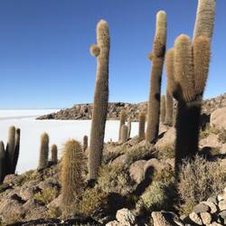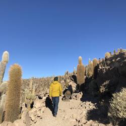 In der Salzwüste machen wir einen Stopp bei Incahuasi, Eine "Insel" mitten in der weissen Wüste, die voll mit Kakteen ist. Wir wandern etwas hinauf und gönnen uns einen Kaffee bevor es wieder weiter geht.