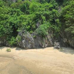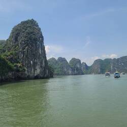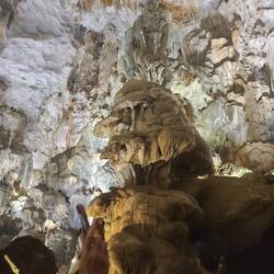 Ha Long Bay limestone cave tour on one of the islands. It saw actually a huge cathedral room! Huge!