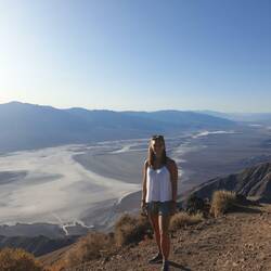 Mittags fuhren wir in Richtung Death Valley. Das ist ein Wüstental das zu den heißesten Orten der Welt gehört. Dort kann der Boden im August Temperaturen bis zum Siedepunkt erreichen.