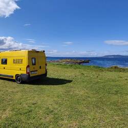 Als wir in der Früh rausguckten, sahen wir Delfine im Wasser. 🐬🌊 Wir freuten uns riesig. 🥰 Wir quatschten mit den Stellplatznachbarn und genossen die Landschaft. Bevor wir weiter fuhren,En savoir plus