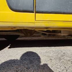 Als wir zum Rüdi gingen, sah Tino, dass unten beim Fahrzeug die Seitenschweller eingedrückt waren. WirBaca lagi