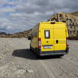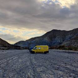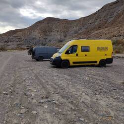Am Vormittag machten wir uns im Konvoi auf Richtung Tarbernas Wüste. 🏜️