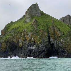 Arrived early this morning at our first stop, the St Matthew Island, inhabitants : artic foxes, red foxes, voles, puffins, The Snow bunting and Mckays bunting which is unique to this island. Less people have set foot on this island than climbed Everest and we will not be increasing this number today as it is considered to rough to attempt a landing, so we will have to be content with a trip along the coast in one of the small Zodiac boats that are used for these type of trips. Whilst I was on deck taking some photos of the zodiacs, Karen was presented with a bottle of Prosecco and some petit-fours to recognise today’s event, how best to celebrate a birthday when you are at the most remote US island. The weather is changing very quickly today, one moment clear then the cloud descends and the island is just a shadow. The tannoy in the room seems to have stopped working this morning (odd things happen in this cabin, yesterday the television reconfigured itself to German, eventually managed to change back) so we made sure we were ready well in advance and made our way down to the exit deck for our trip to arrive at our allotted time. We probably didn’t need to have been on time as apparently H comes before G in the American alphabet as a group of Americans were already there wanting to travel together, then getting separated and mixing up the assembled groups and such making a fuss that an English couple eventually disembarked to allow them on. Helped onto the zodiac and settled on the sides, advised not to try standing up to take pictures when going at speed, our guide ( who could easily be mistaken from Sideshow Bob in the Sampson’s) started the outboard and off we went. A few waves did break over the bow, but fortunately I was in the stern and the people in front of me saved me getting wet. After an hour back to the ship, we are now doing a circum-navigation of this and the other smaller (Halls island, don’t know if the smallest has a name) islands before we turn South-East and head for the Aleutian Islands for our next stop the day after tomorrow.Les mer