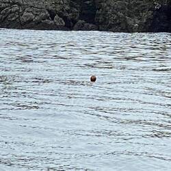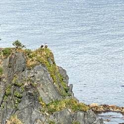 Finally 18:30 and our time to go, the mist and drizzle are back, 2 minutes out and can no longer see the ship. Had to remove my glasses as they were too wet to see through. 5 minutes later the drizzle had stopped, we could see the ship again. I dried my glasses and put them back on. Two bears on the shoreline, the pilot drifted us in as close as possible to the first bear, then slowly moved back and further down the bay to the second bear, again drifted in as close as possible. Think you will probably just be able to see the bears in the pictures, clearer on the iPad. The plan was then to move carrots the bay to an island on the other side to view the birds, but part way across our pilot/guide spotted what he believed was an Ancient murrelet, ( was on maximum, but picture still very small). Back to ship, a small group of sea otters floated by on their backs whilst we ate a late dinner, we then slowly sailed out of the bay towards our next stop. Apparently not far estimated arrival time is our midnight.Les mer