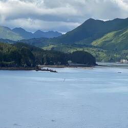 Our fist stop was at one of the navigation buoys in the harbour, this is where a group of young Stellar seals were taking an afternoon nap. Sitka itself is on an island and is the only town/port facing out to the pacific, but is protected from the bad weather by numerous small islands. It was around these islands we next went searching, we found a raft of sea otters lying on their backs in kelp by one island. On another isle there were cormorant watching from the rocks and further on we spotted a bald eagle watching us from a tree, before taking off and crossing to another tree on a nearby island, ( my picture of the eagle in flight is blurry so probably won’t use here). From the second tree he was able to watch the family nest containing 2 eaglets on a tree on third island. We now had navigated our way through these islands into pacific. After a short while we spotted whales spouting. The boat closed in on the whales as near as it could get and here we spent 30 minutes, watching the whales diving then scouring the sea to find where they would surface again. Eventually we were taken back to Sitka pier where we disembarked the tour ship and caught the tender back to the ship. The discussion point in the restaurant was Karen saying that she believes the 2 waitresses are twins, I obviously bow to her superior knowledge on the subject of twins. Have never seen the 2 without their masks on, but their stature and the part of their face you can see are very similar so it is probably a correct deduction.Les mer